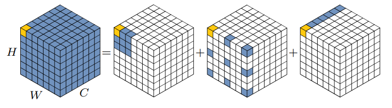 使用三个分支,每个分支都在捕获来自 H、W 和 C 的任意两个域之间的跨域交互。